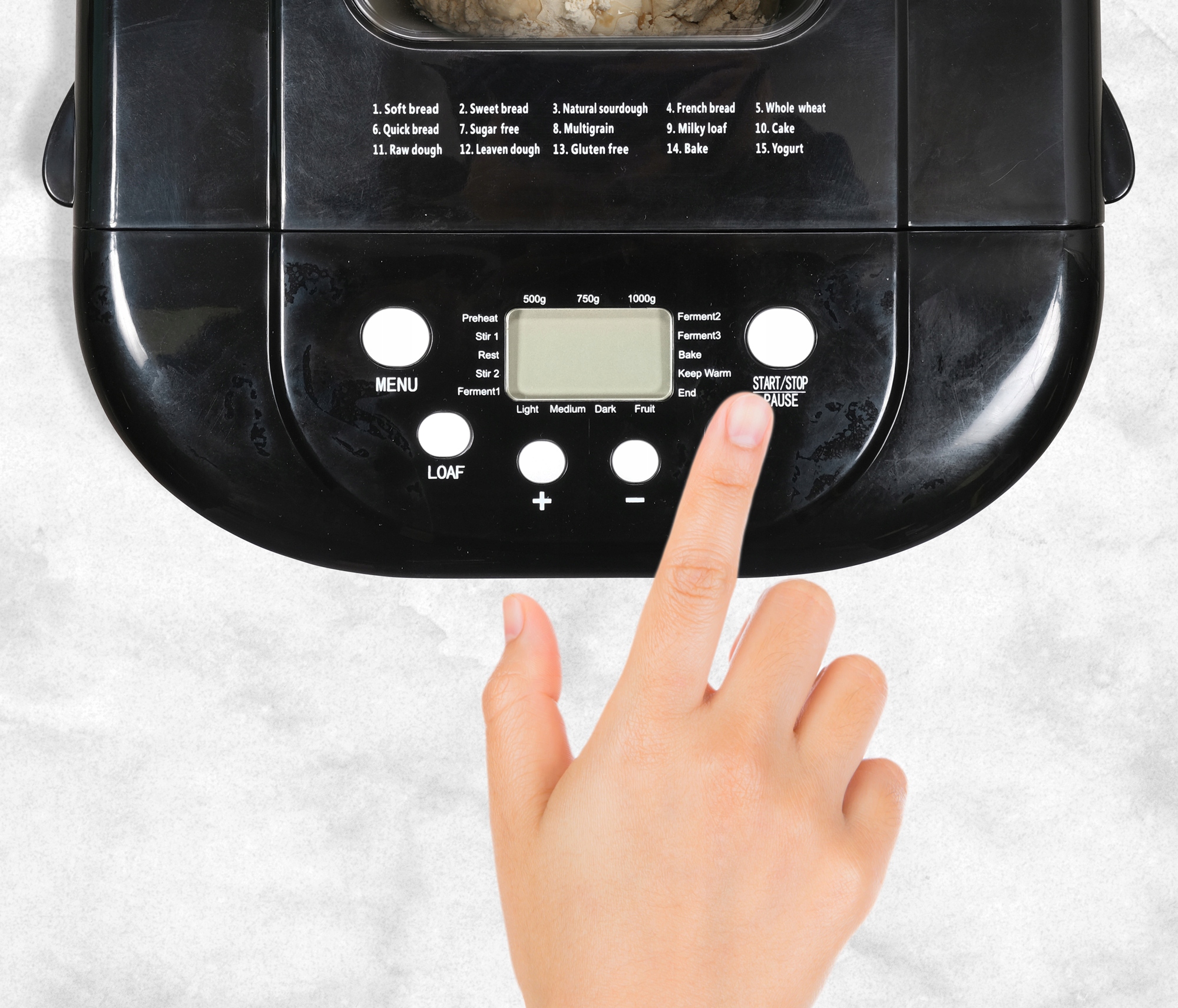 Хлібопічка з 15 автоматичними програмами для приготування тіста, випікання хліба та приготування йогурту. Крім програми, користувач також вибирає розмір хліба і ступінь підрум'янювання скоринки. Додатковою перевагою є функція відкладеного старту, яка дозволяє запрограмувати пристрій, щоб хліб піднявся під час приготування страви