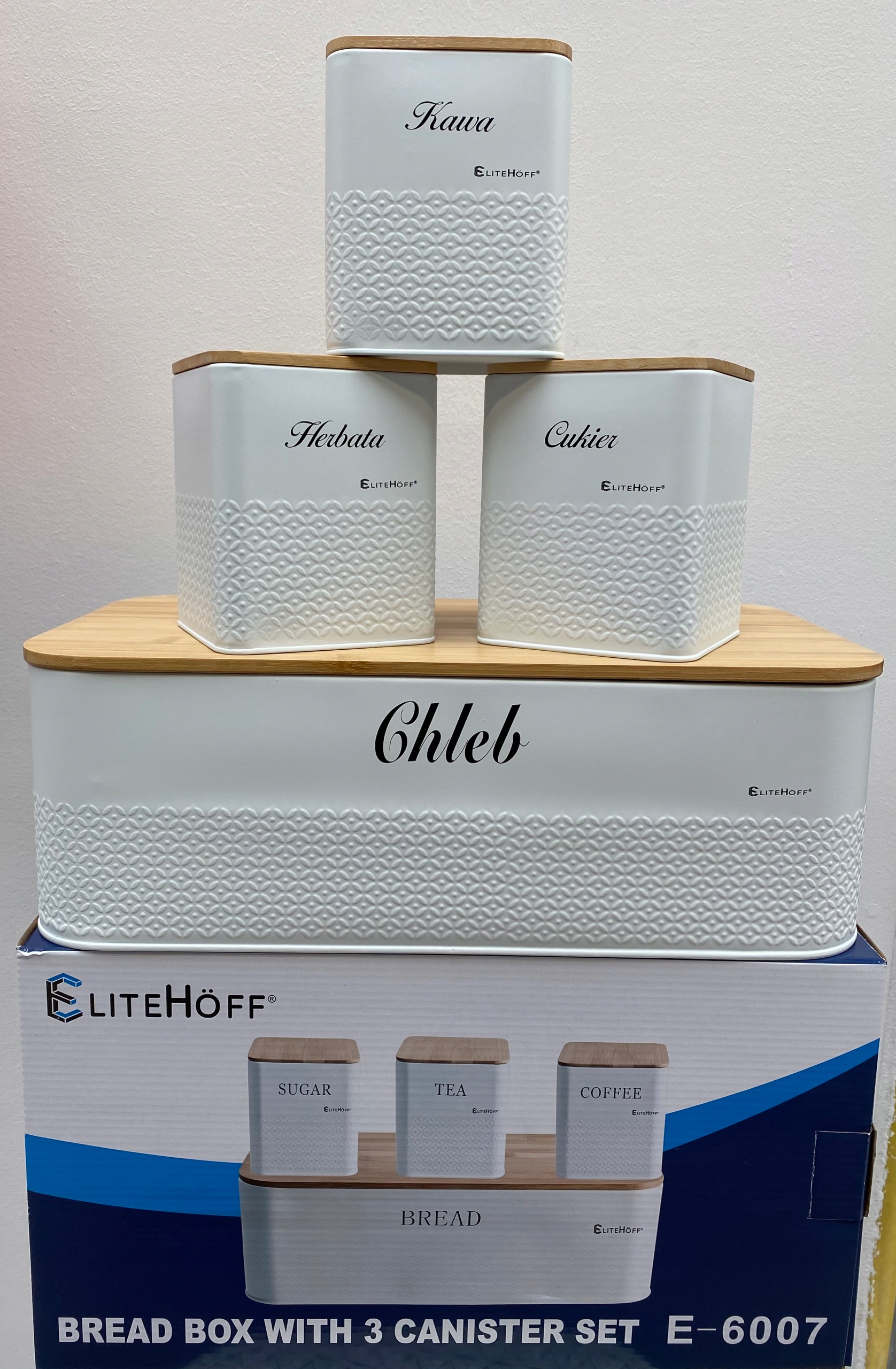 Набір металева хлібниця + 3 контейнери, цукор, кава, чай