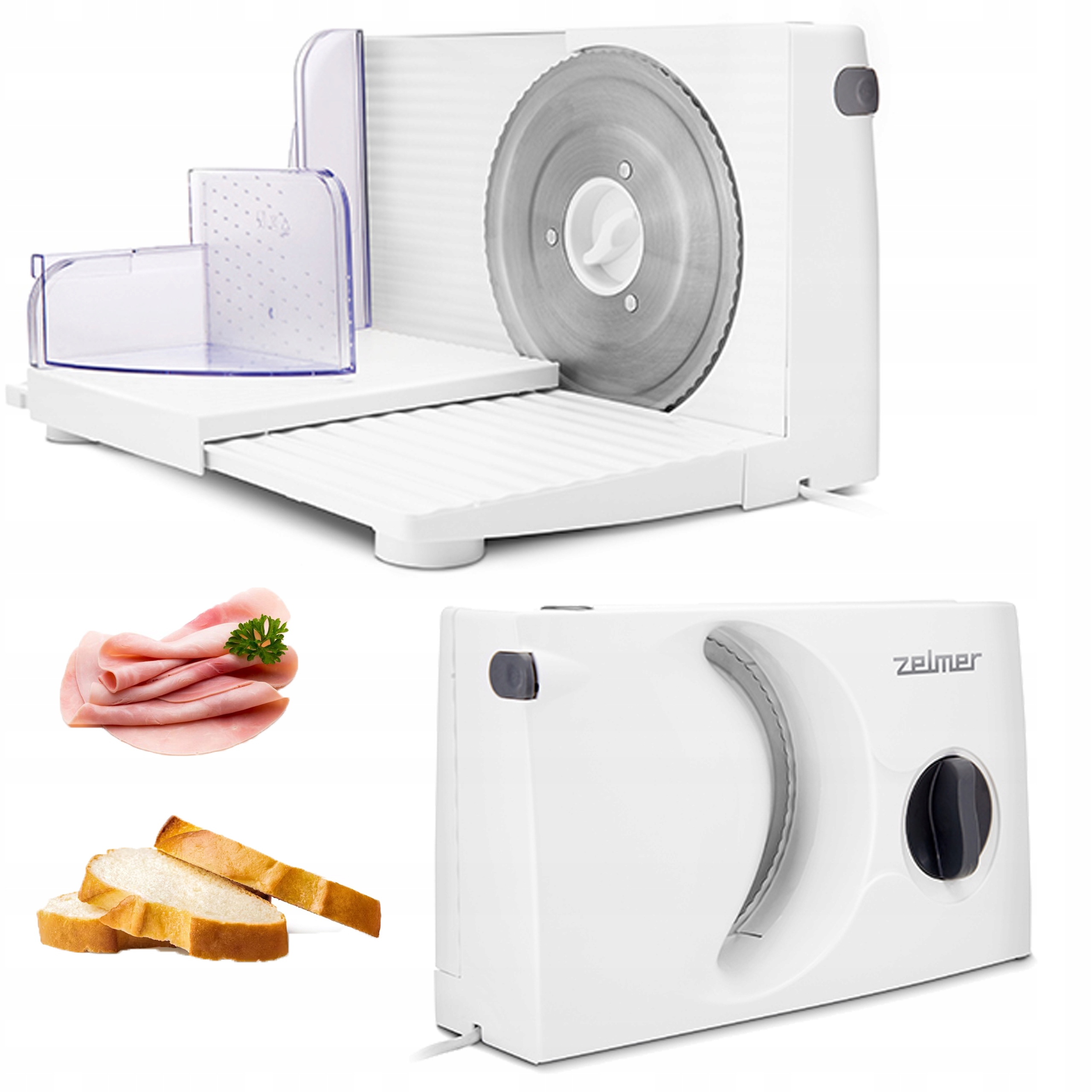 Слайсер Zelmer — це найшвидший спосіб нарізати буханець хліба чи вашу улюблену шинку. Потужність в 150 Вт гарантує, що прилад впорається як з м'яким сиром, так і з м'ясним м'ясом. А 15-міліметровий діапазон різання дає вам свободу вибору товщини скибки або скибочки. Тепер, наприклад, ви можете приготувати сирну дошку або ассорти з нарізкою не тільки ефектно, але й ефектно. Всі частини будуть однакової товщини. Така симетрія дуже красиво виглядає на столі!