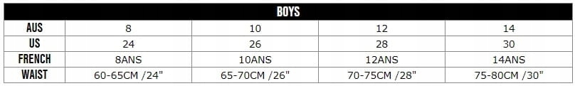Таблиця розмірів веселих кофрів для хлопчиків Прикольні скрині 8 10 12 14 Великобританія 24 26 28 тридцять DE 140 152 164 176 Талія [см] 60-65 65-70 70-75 75-80