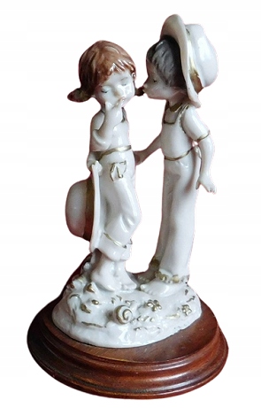Предметом аукціону є статуетка, яка зображена на фото. Привезена з Німеччини - куплена в trodelhalle для колекціонерів. Мені важко сказати, з чого він зроблений — може, зі смоли, а може, з чогось іншого. У будь-якому випадку він ідеально «імітує» порцеляну. Фігурка обов'язково декорована вручну. Його поставили на дерев'яну основу. Стан фігурки задовільний.
