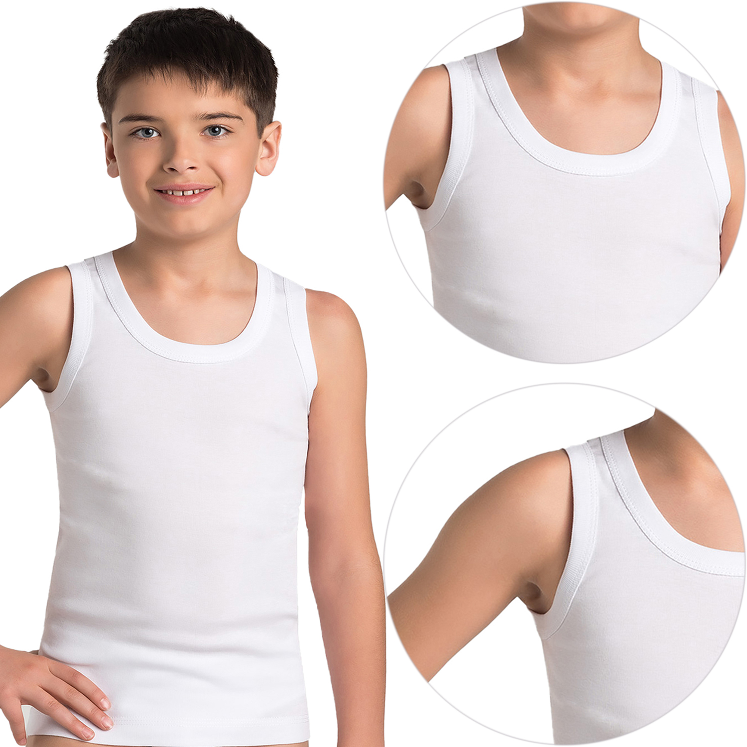 Хлопчик T -сорочка, білі бавовняні ремінці 140