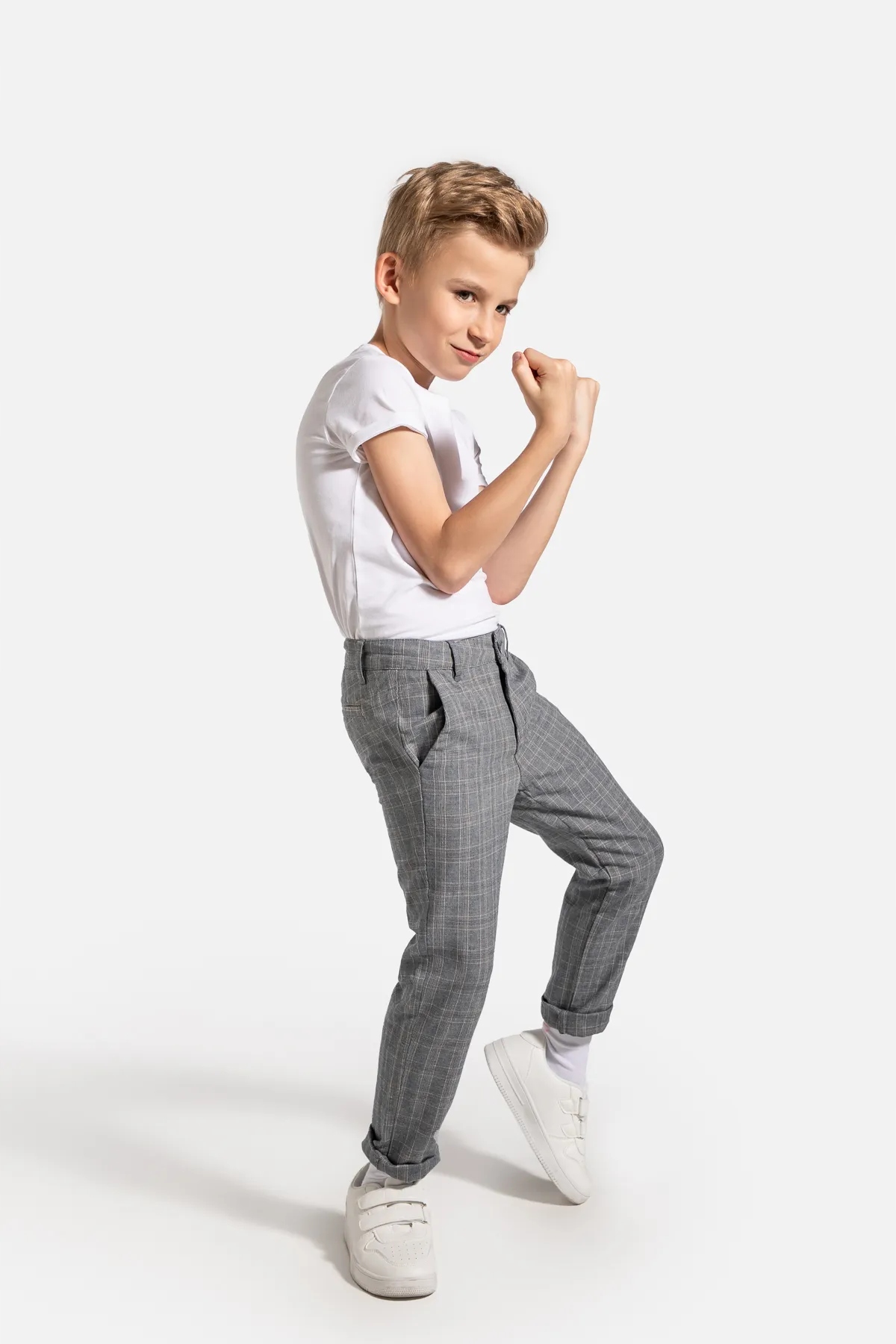 штани з елегантної колекції молодших хлопчиків - ідеальний вибір, коли мова йде про щоденні виїзди та важливіші випадки. У них внутрішні кишені . Ідентично вони поєднаються як із сорочкою, так і зі звичайною футболкою.