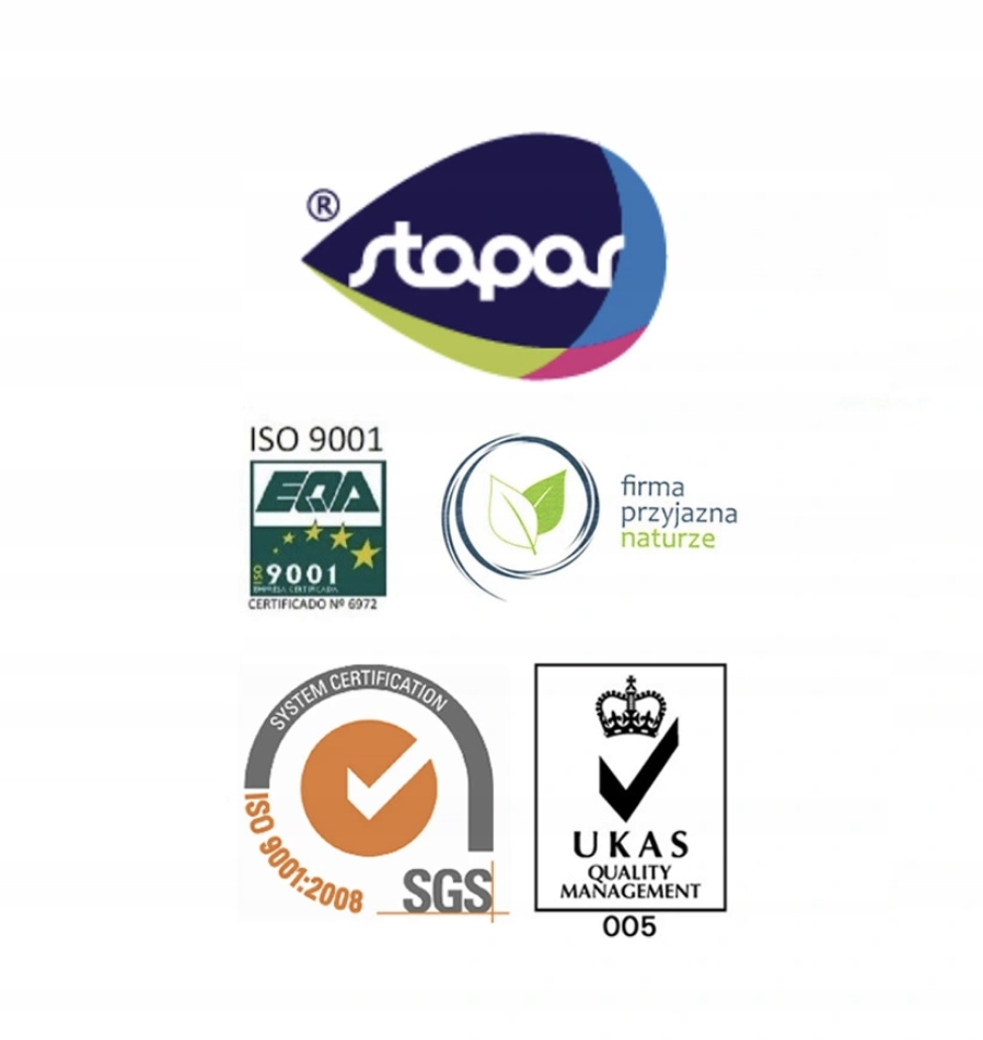 Хімічні засоби для басейнівStapar Aqua Fun мають сертифікати ISO 9001:2008, SGS, UKAS для препаратів для очищення води, очищення та дезінфекція басейнів, сертифікати PZH та дозволи на торгівлю на польському ринку, видані міністром охорони здоров'я та сертифікат контролю якості. Вони виготовляються відповідно до найвищих норм і стандартів, що діють у Європейському Союзі.