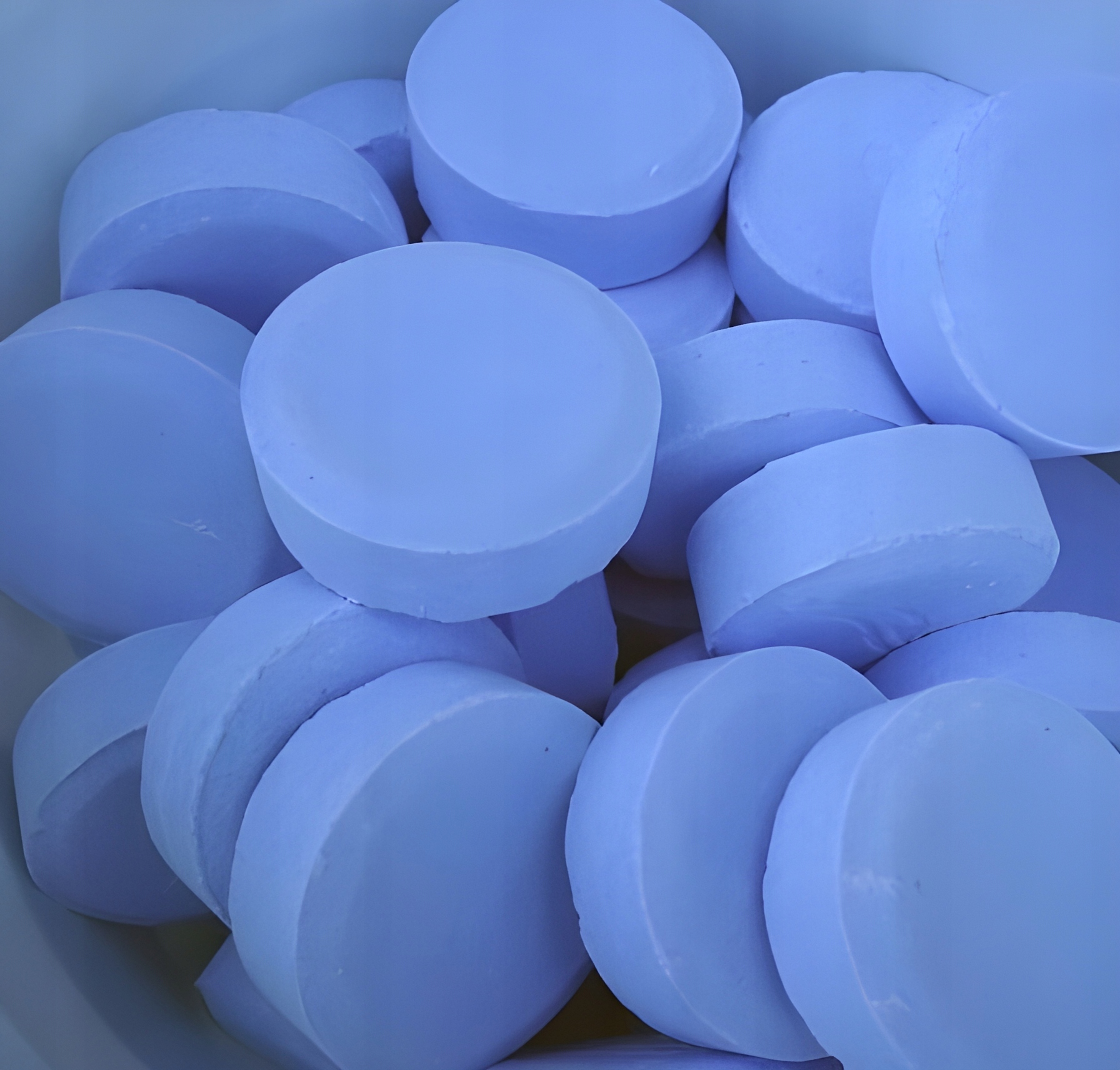 Хлорні таблетки 20 г для постійної дезінфекції води в басейні, які повільно розчиняються, одночасно запобігаючи утворенню водоростей і сприяючи флокуляції (злиття частинок бруду для легшого захоплення насосом) ). Мають біоцидну дію на штами: Pseudomonas aerginosa, Staphylococcus aureus у концентрації 1 мг/л, час контакту 60 хв. т. 20С і альгіцид в концентрації 10мг/л, час контакту 60 хв. бар 20C.