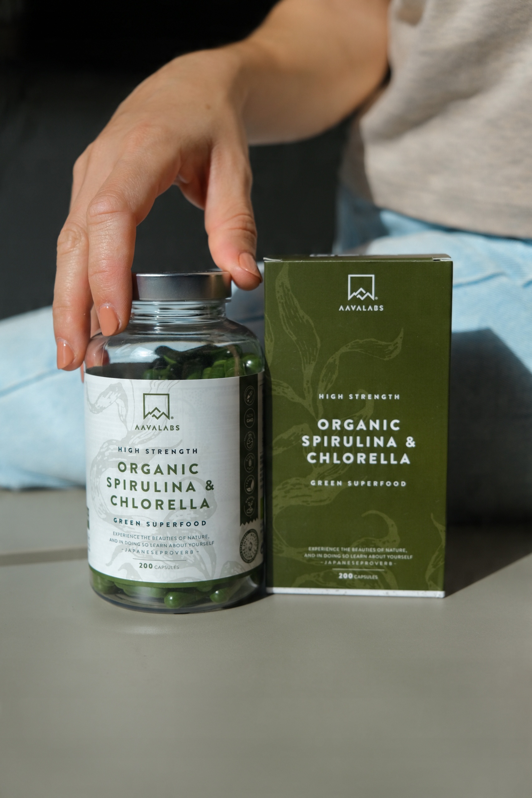 спіруліна та хлорела вже були відомі ацтекам і були зібрані століттями через їх унікальні властивості. Це поєднання супер -зелених інгредієнтів, багатих вітамінами, містить більше поживних речовин на грам, ніж капуста, шпинат або брокколі -все це в легких -для -візьмі капсули.