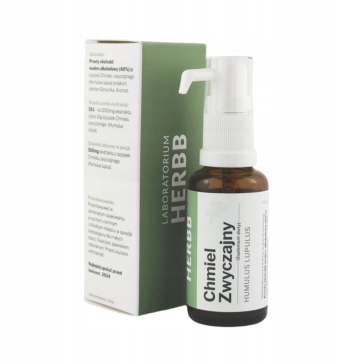 Простий водно-спиртовий екстракт (40%) з: шишок хмелю (Humulus lupus) Польські сорти Goryczka та Aromat.