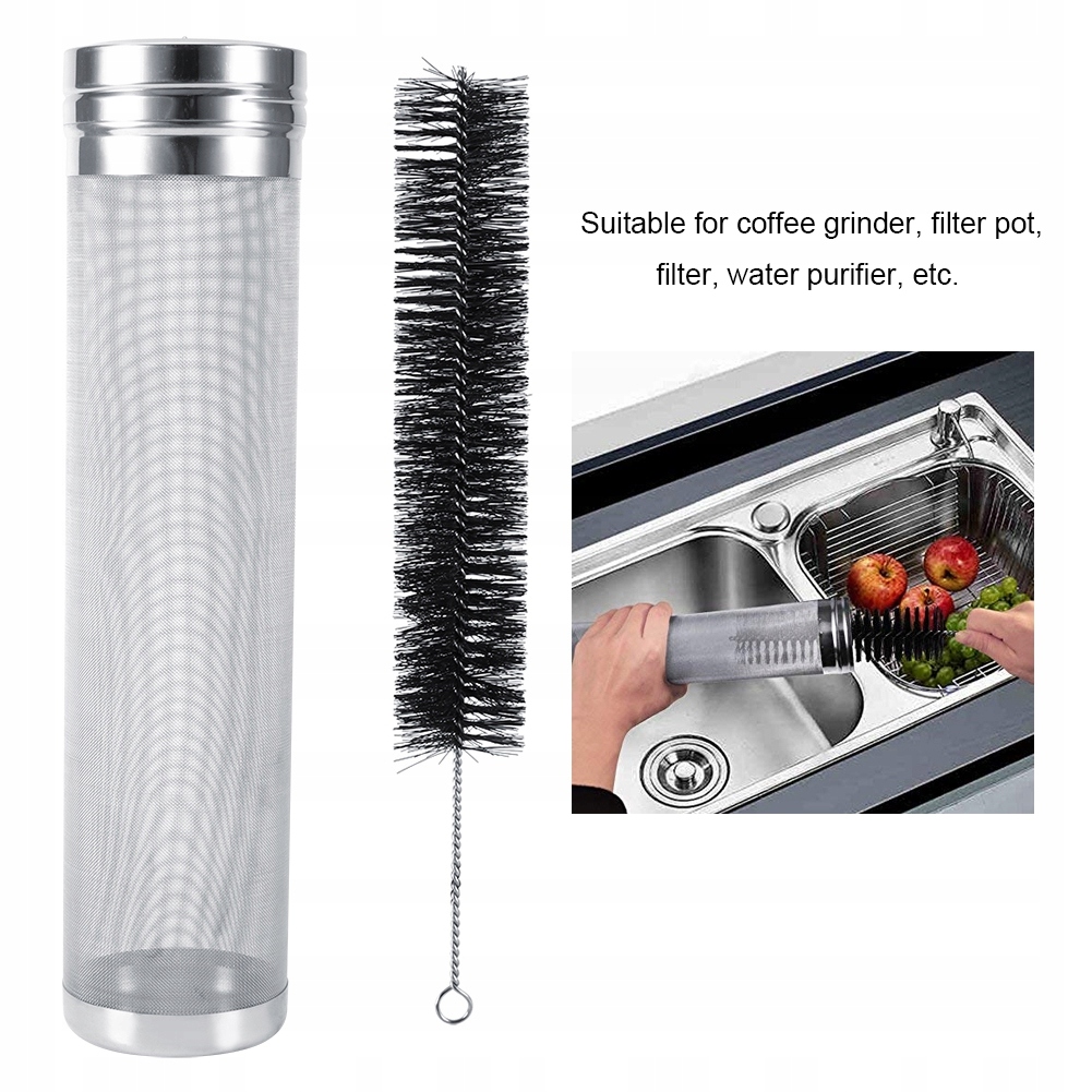 Фільтр хмелю для пива з нержавіючої сталі з набором сітки для очищення 300 мкрометрів для бочок домашніх кегів 7x29 см / 2,8 х 11,4 дюйма фільтра хмелю з набором чищення пензлів