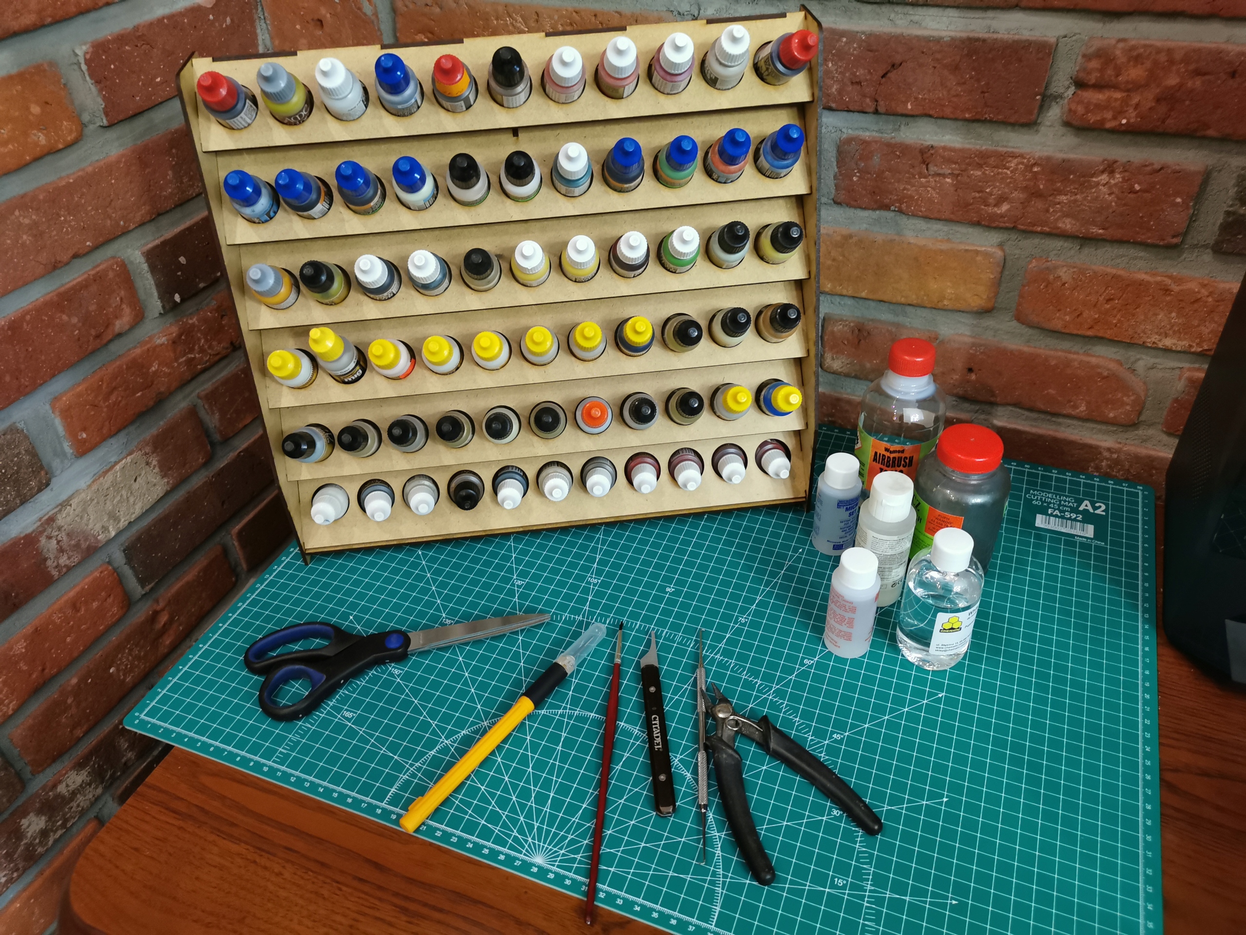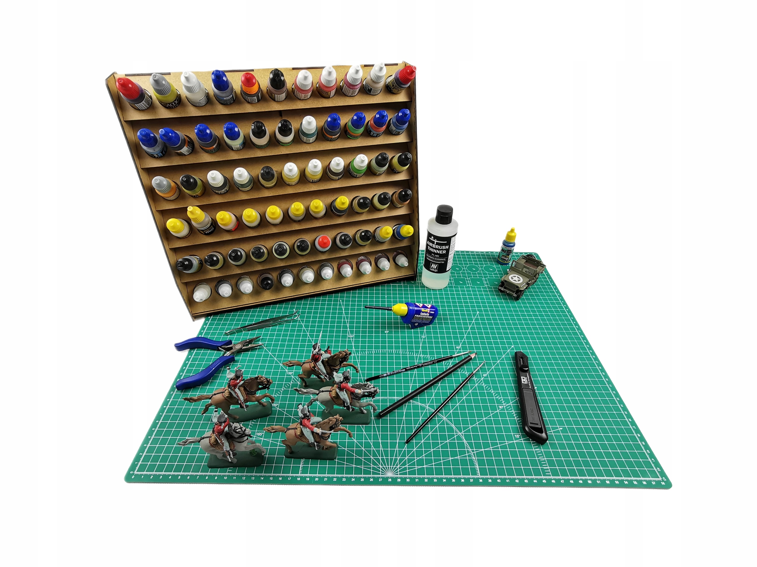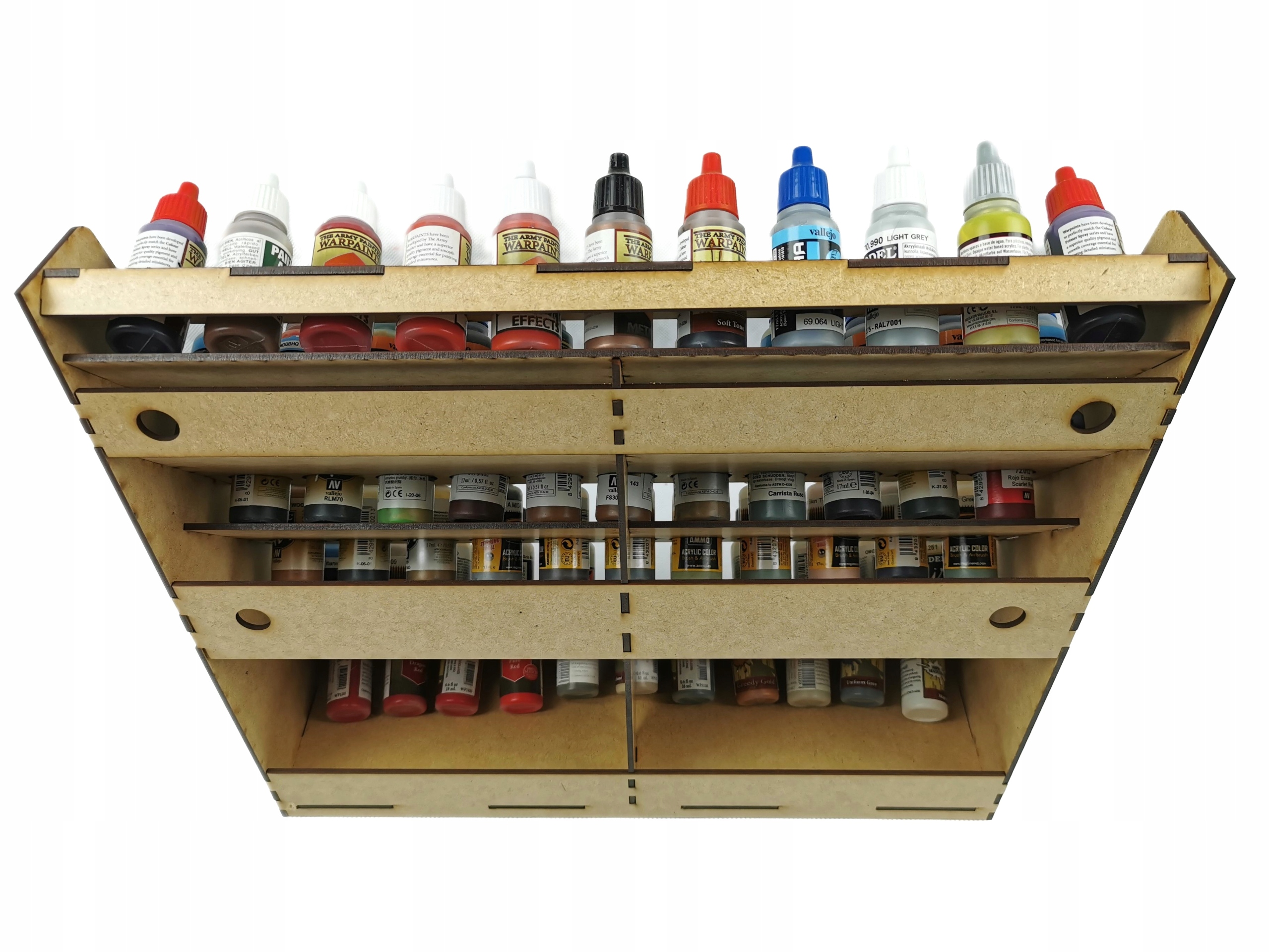що робить його ідеальним рішенням для зберігання широкого асортименту фарб для моделювання. Продумане розташування полиць дозволяє зберігати максимальну кількість фарб, займаючи мінімальну кількість місця на столі/стіні.