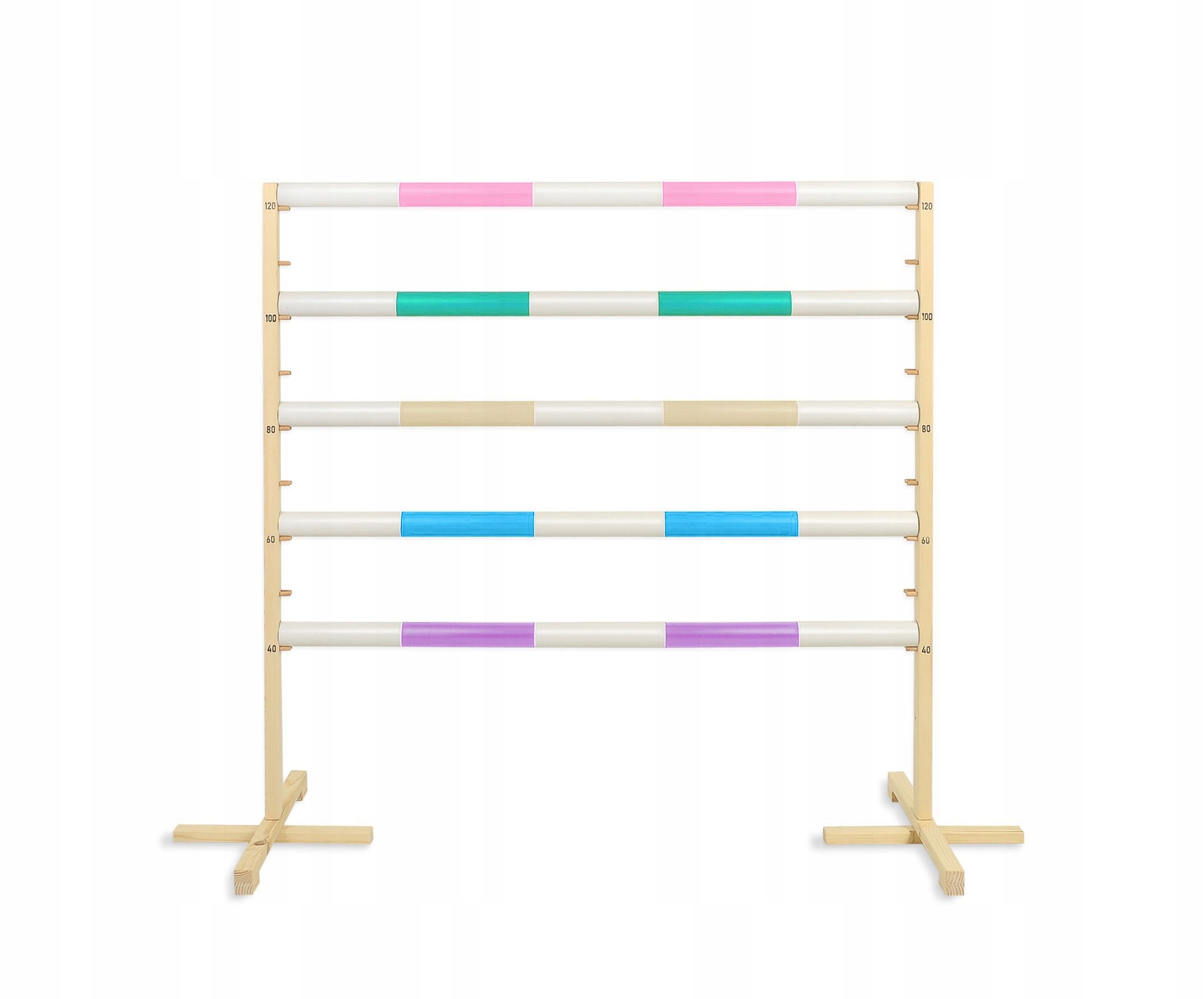 4 Він має стабільні ноги, завдяки якому він впевнено стоїть. Бруки пластикові, легкі, доступні в декількох кольорах.перешкоди можна встановити на висоті від 40 см до 120 см, залежно від зростання дитини та моторних можливостей. Кухарі були розроблені для падіння під час ноги. Неможливо, щоб дитина впала під час стрибка.