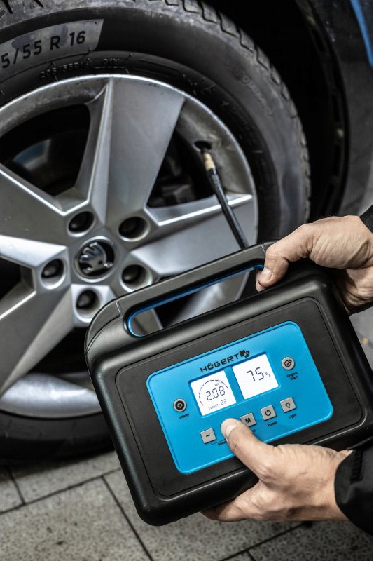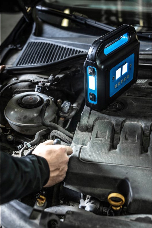 Інструмент 4in1. Основна функція - аварійний початок автомобіля з виписаним акумулятором. Побудований -in повітряний компресор з тиском 8 бар допоможе надути колеса в пасажирському автомобілі, велосипеді або мотоциклі. Вбудований ліхтарик працює в трьох режимах: постійні, миготливі та сприйняті та викликають допомогу SOS. Це може бути надзвичайно корисно у випадку невдачі автомобіля після темряви. У ньому також є 2 USB -входи , завдяки якому ви можете зарядити телефон або інший пристрій. Пристрій оснащений 2 великими та розбірливими дисплеями. Один із дисплеїв дозволяє встановити вибраний тиск та контроль процесу насосів, а також змінювати одиниці міри (бар, psi, кг/см2) . Другий дисплей показує заряд акумулятора.