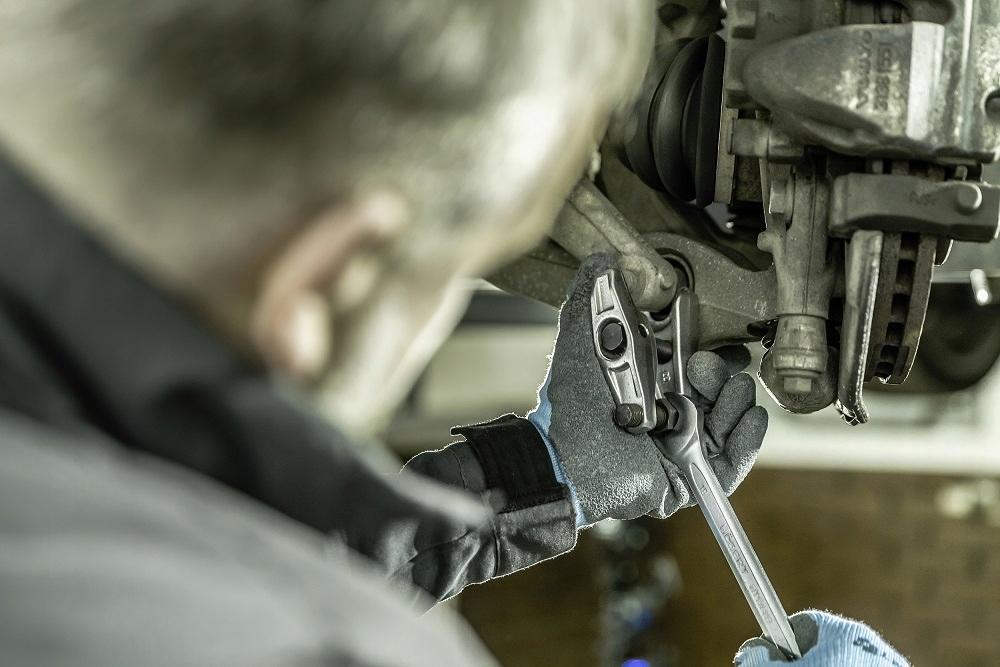 - Універсальний знімач для вилучення кульового шарніра з кінця рульової тяги,