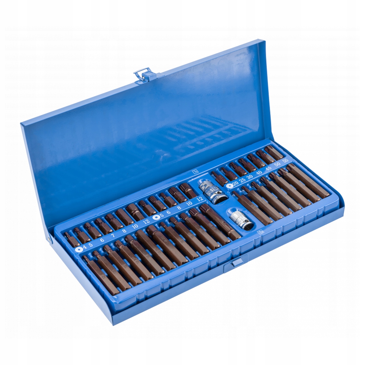 Набір із шестигранних, торксових і шлицевих шестигранних насадок із 40 предметів. Виготовлений з міцної та довговічної легованої сталі S2. Використовується в майстернях, ремонтних і будівельних роботах.