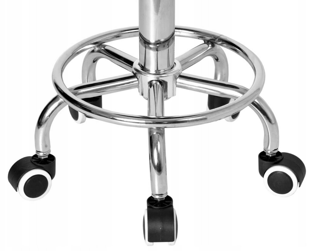 Міцна основа з гумовими коліщатками забезпечує стійкість та мобільність стільця, що є безцінним у динамічному робочому середовищі перукарні чи салону краси, водночас захищаючи підлогу від подряпин.