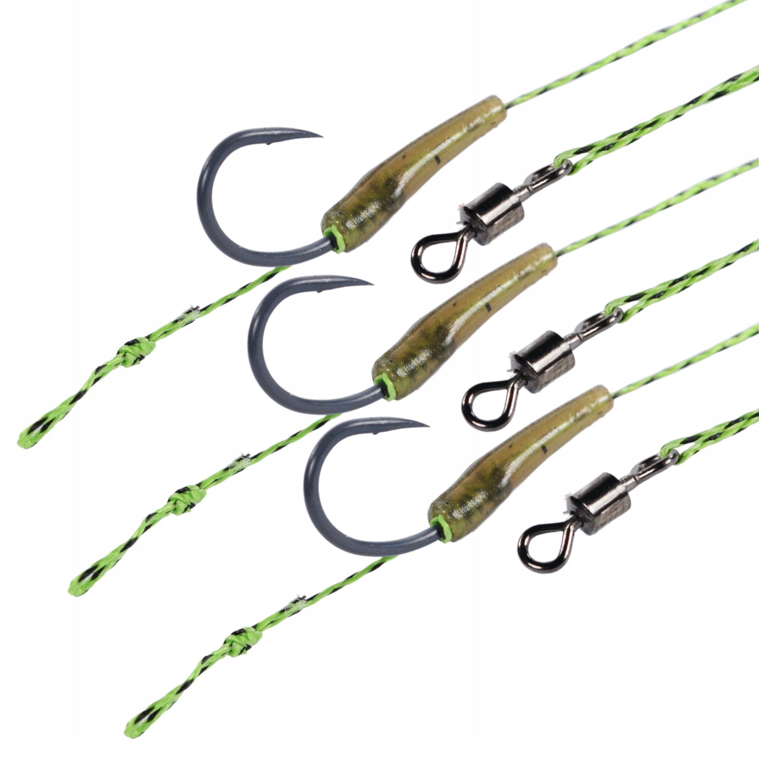 набір лідерів з волоссям. Лідери ідеально підходять для годівницьких та коропських методів. Міцний гачок з лідером з коси. Стерпер запобігає падінню білкових кульок, зерен, гранул.
