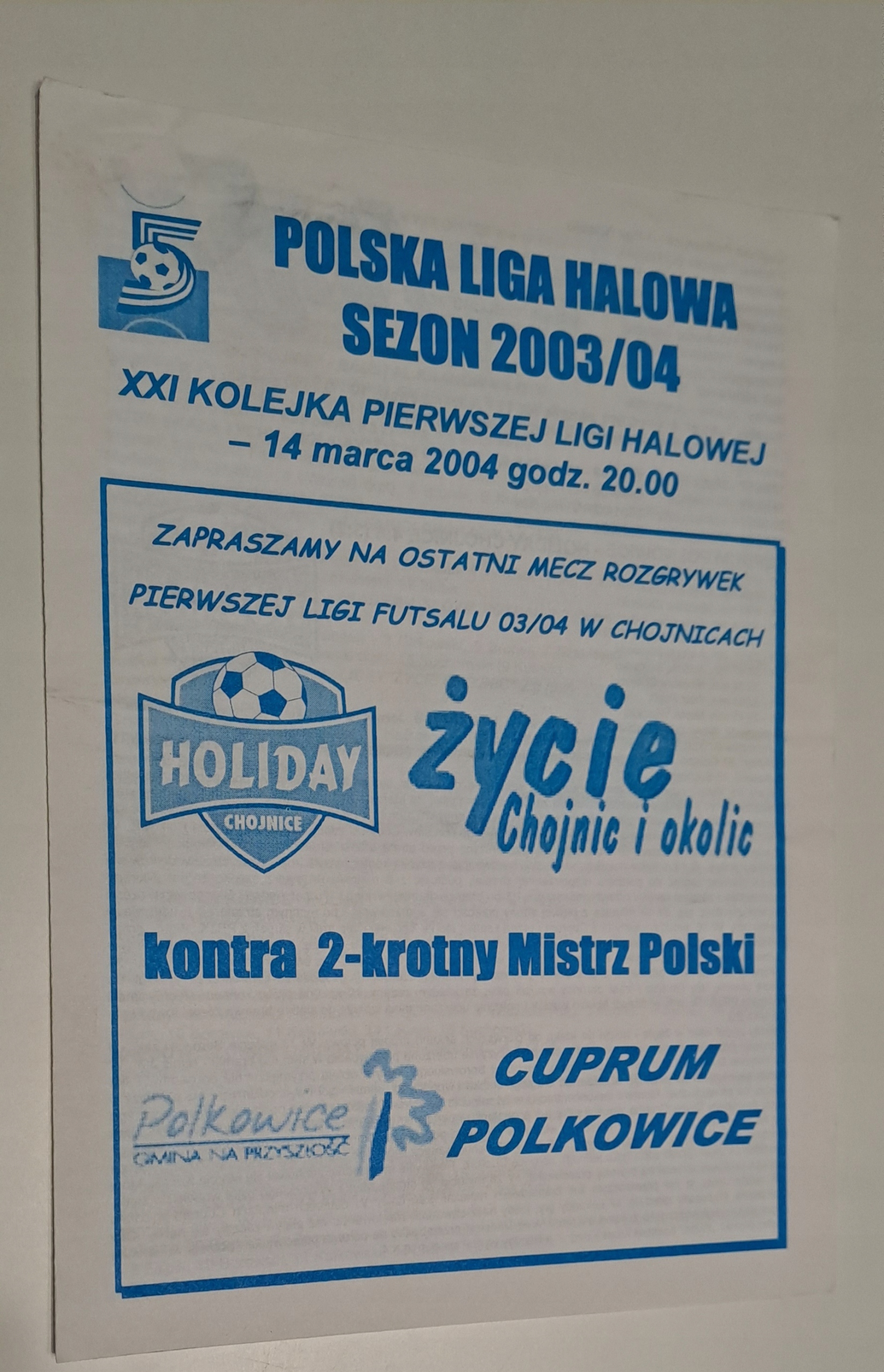HOLIDAY CHOJNICE - ШАХТАР ПОЛЬКОВІЦЕ 14-03-2004 ФУТЗАЛЬНА МАТЧЕВА ПРОГРАМА