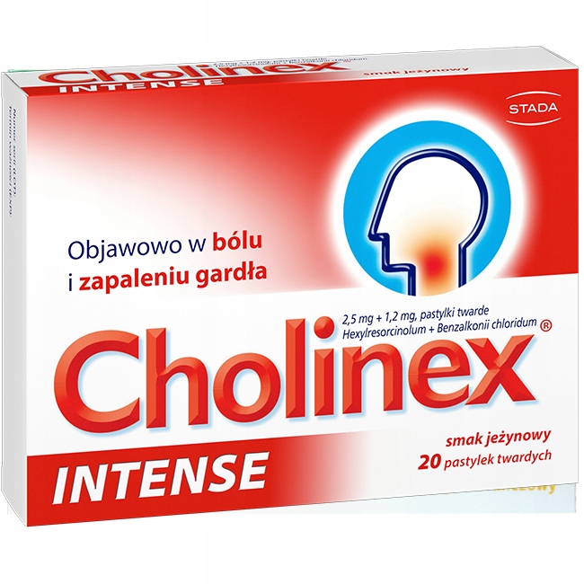 Cholinex Intense у формі таблеток для розсмоктування з болезаспокійливою та протизапальною дією.