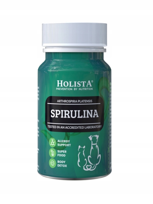 спіруліна в таблетках для собак та котів з величезними харчовими цінностями. Підтримує очищення важких металів та токсинів. Підтримує імунітет, має антигістаміновий ефект, що зменшує алергічні реакції.