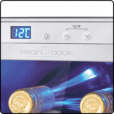 ProfiCook PC-WK – це компактний винний холодильник, який є чудовим вибором для тих, хто хоче ефективно зберігати та охолоджувати вино. Прозорий скляний фасад (скло з УФ-фільтром) з елементами з нержавіючої сталі, дерев’яні полиці та внутрішнє освітленняроблять його ідеальним доповненням до елегантної кухні, готельного номера чи бару.