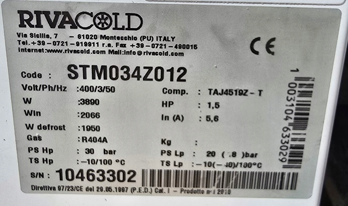 - Потужність для R404A: 2,46 кВт - температура випаровування -10*C / температура навколишнього середовища +32*C