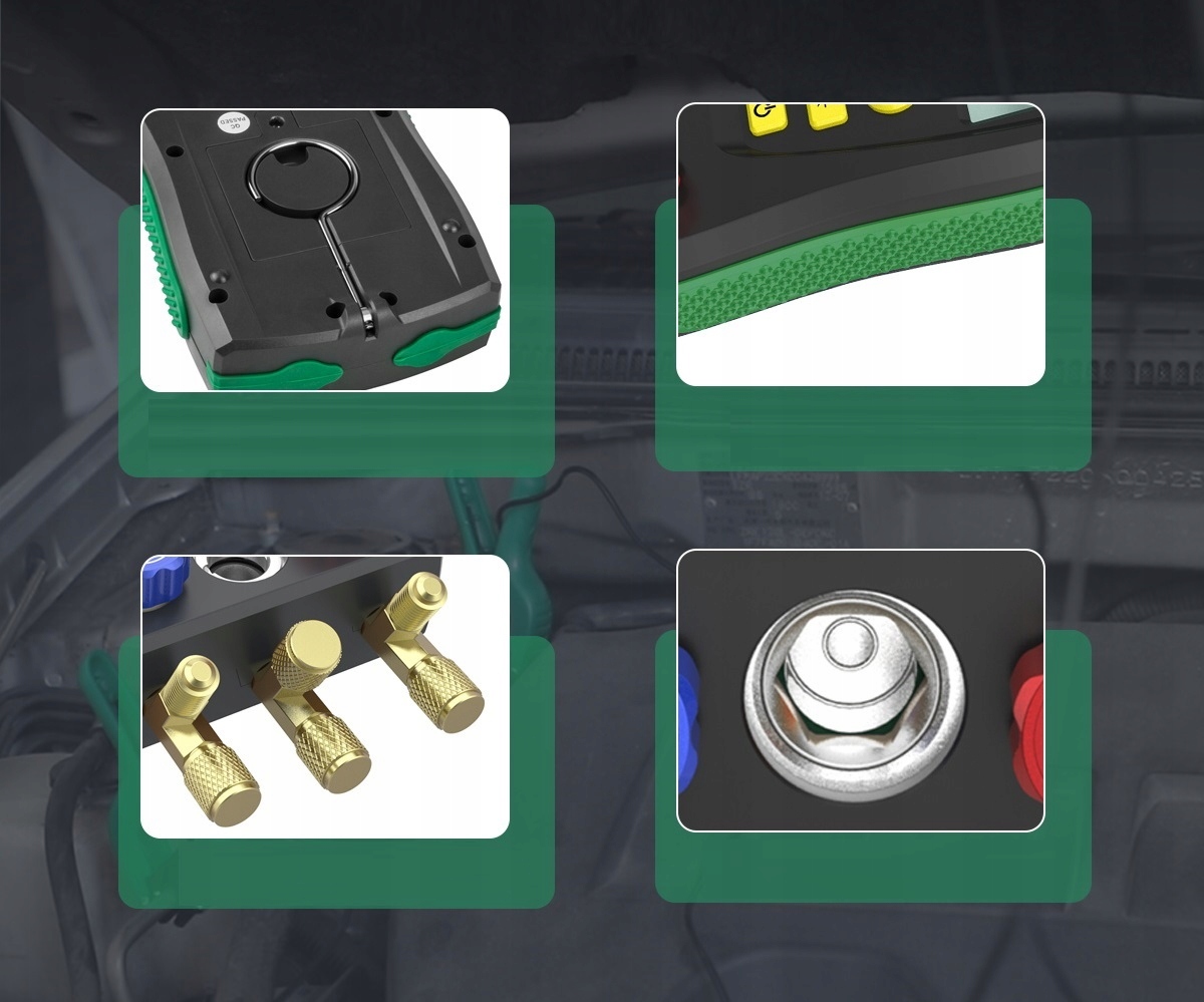 - ✅Додаткові функції: b> Тестер також вимірює відсоток вакууму, витоку тиску та запис швидкості витоку часу, що забезпечує повний контроль системи охолодження.