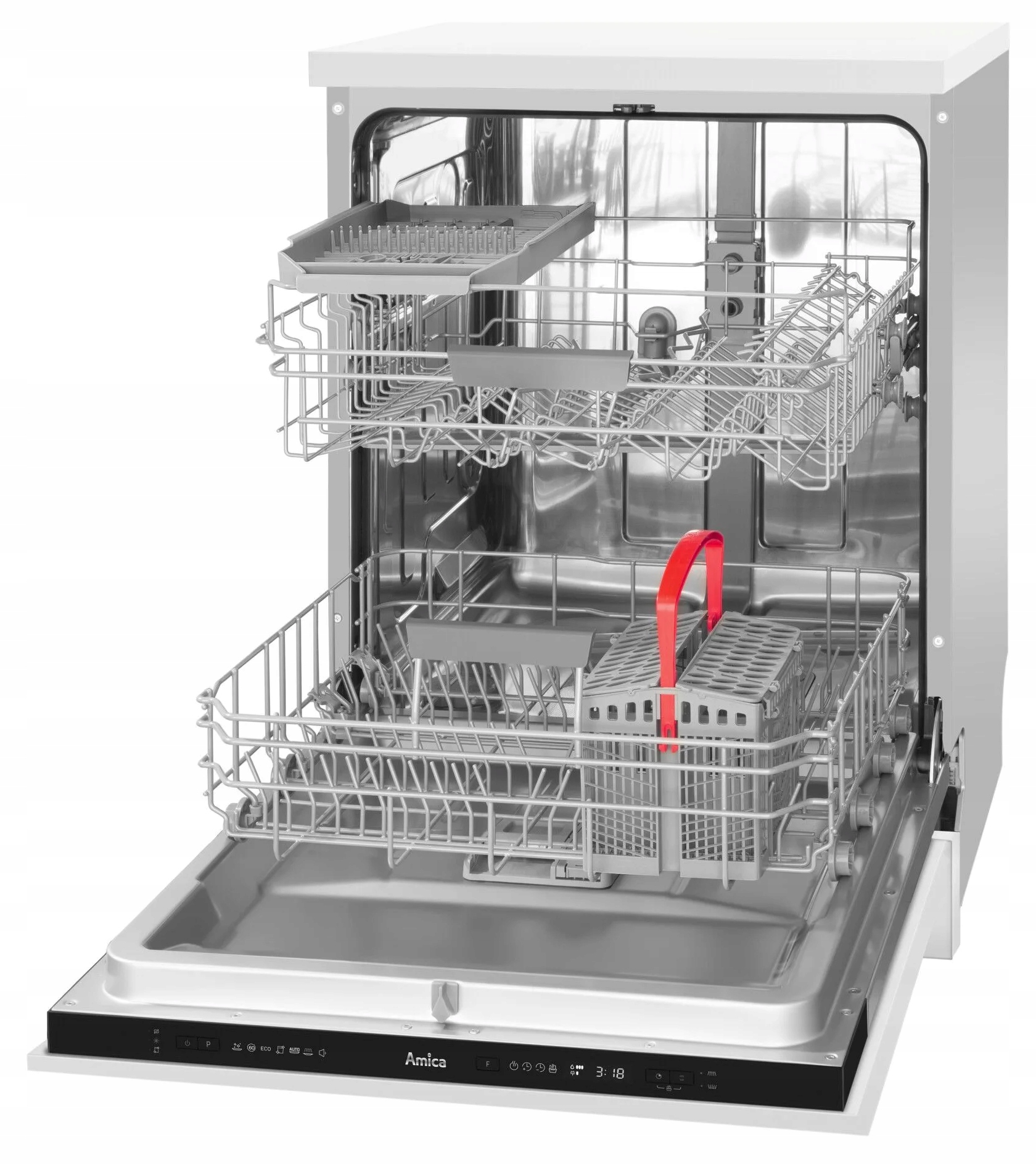 - Вбудована посудомийна машина AMICA DIM62OqH 60см, 44дБ, 14 комплектів, відстрочка старту, 3 корзини, регулювання кошика та полиці, звукова сигналізація, HotAirDry, OpenDry