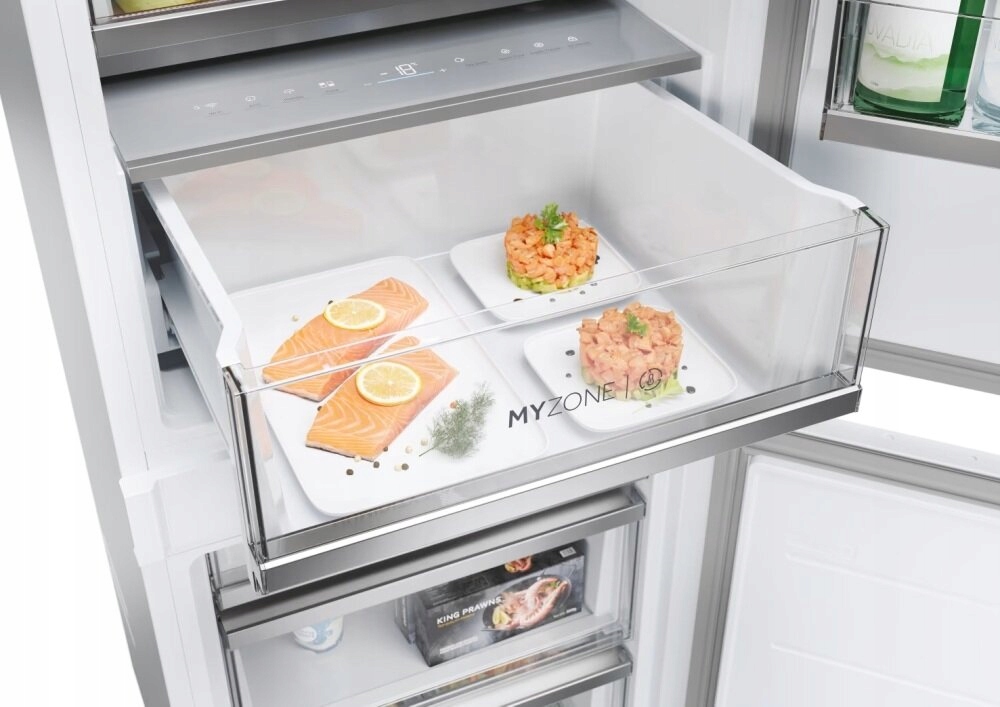 Ящик My Zone дозволяє встановити відповідну температуру залежно від типу продуктів, що зберігаються. Доступні три відділення: Fresh Zone (від 0°C до 1°C), Quick Cooling (від 2°C до 3°C) і Fruit and Vegetables (від 4°C до 5°C), завдяки чому ви створите належні умови для зберігання всіх продуктів - фруктів і овочів, м'яса, сиру, морепродуктів і продуктів, які потребують швидкого охолодження.