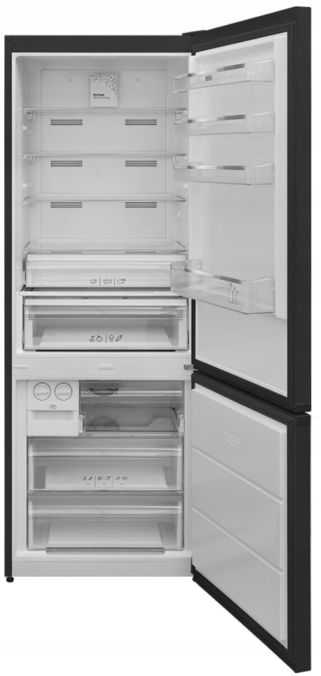 Такі функції, як Super Freeze у морозильній камері та Super Cool у холодильнику, дозволяють охолоджувати їжу чи напої за дуже короткий час. Крім того, в холодильнику є льодогенератор твіст. Завдяки цьому ви можете без зусиль приготувати холодний напій у спекотний день. Просто поверніть ручку льодогенератора і лід посиплеться в спеціальний контейнер. Чорна напівматова передня частина надає холодильнику елегантний вигляд і вписується в сучасний інтер’єр.