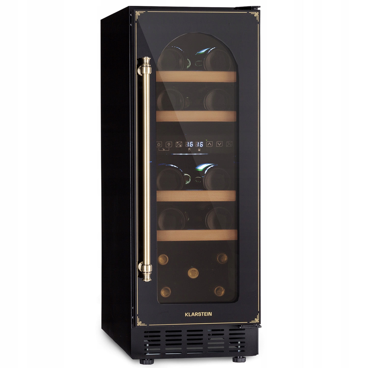 Елегантний дизайн і барвисте оформлення: завдяки своєму тонкому дизайну двозонний охолоджувач вина Klarstein Vinovilla 17 Built-in Duo Vilhelmine Edition підходить практично будь-де! Крім сучасних скляних дверей, винний холодильник Vinovilla 17 Built-in Duo Vilhelmine Edition привертає увагу двома зонами охолодження. Це дозволяє охолоджувати та зберігати червоні та білі вина при різних температурах одночасно. Скляні двері та трикольорове освітлення дозволяють ефектно відобразити ваші винні ресурси! А завдяки стильному чорно-золотому дизайну холодильник чудово впишеться у вашу вікторіанську кухню.