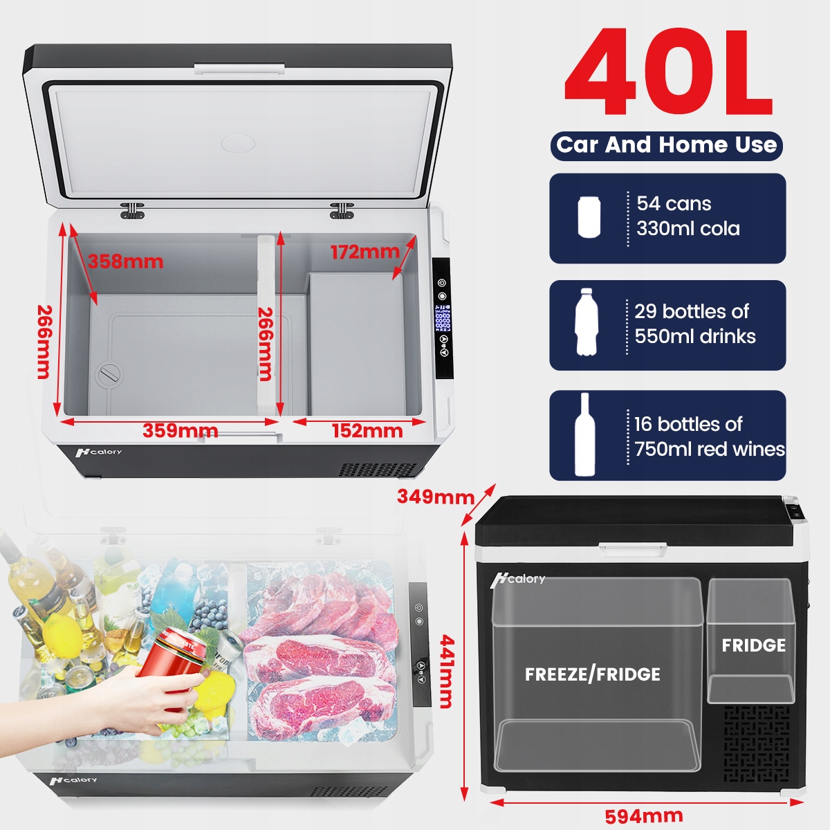 - Велика ємність: внутрішній об'єм становить 40 літрів, що достатньо для щоденного використання. Завдяки своїй чудовій функції він може зберігати продукти свіжими при різних температурах. Ідеально підходить для напоїв, фруктів, морозива тощо.