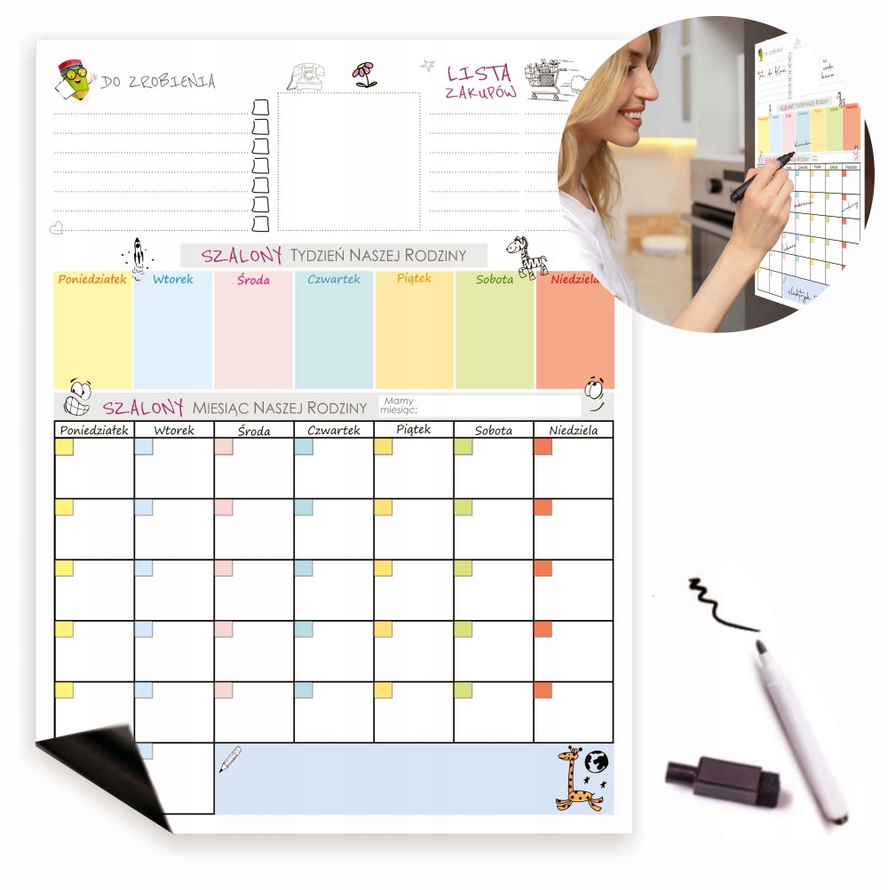 Великий магнітний планувальник для холодильника з чорним маркером.