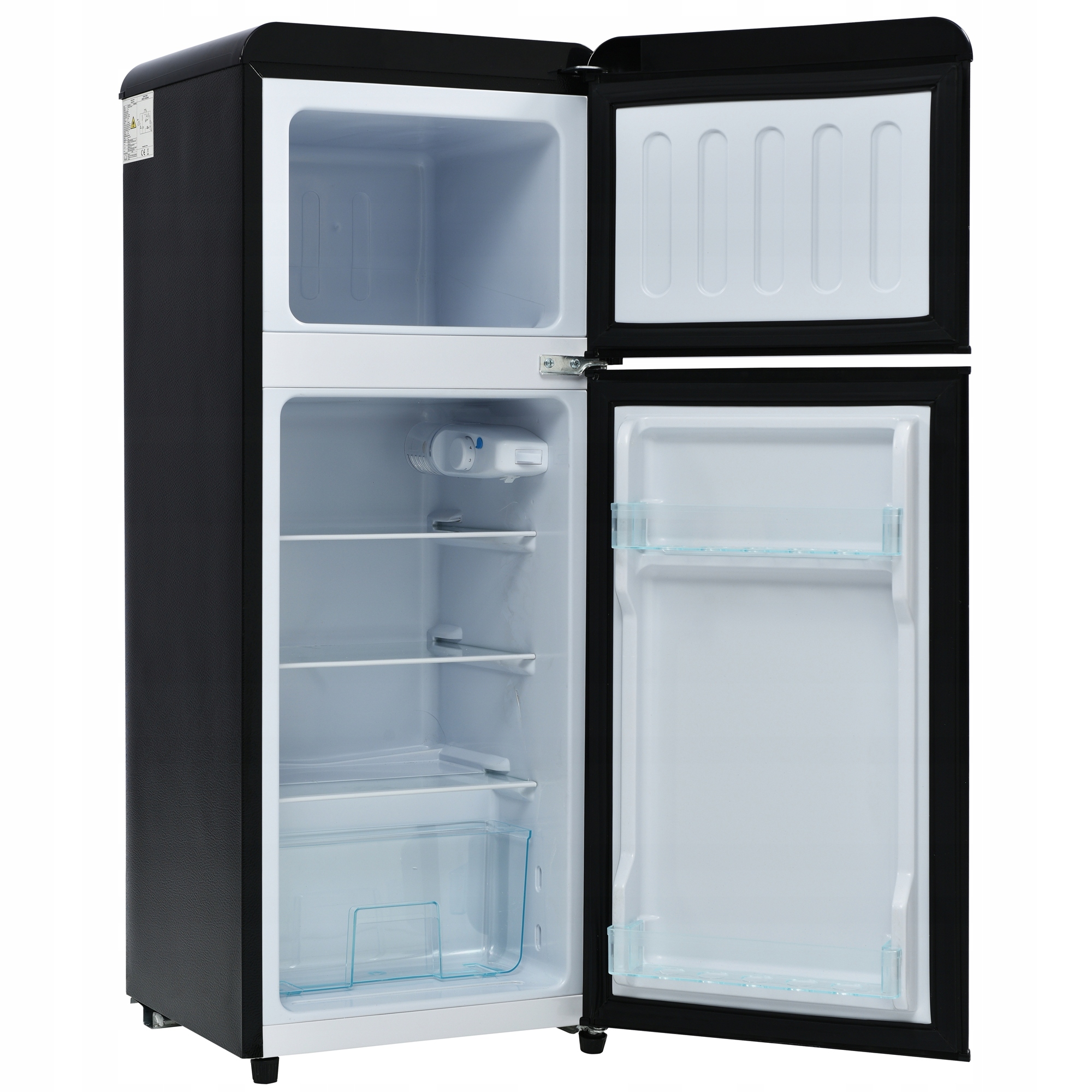 Цей двоповерховий холодильник має компактний і приємний вигляд, який представляє сучасний стиль і задовольняє різні потреби. Завдяки компактному та безкоштовному будівництву, цей двоповерховий холодильник може діяти як запасний холодильник для зберігання напоїв та закусок у вітальні, кухні або поруч із диваном. Інтер'єр має потужність 92 літрів і оснащений світлодіодною лампою, яка забезпечує неекстракційне освітлення.