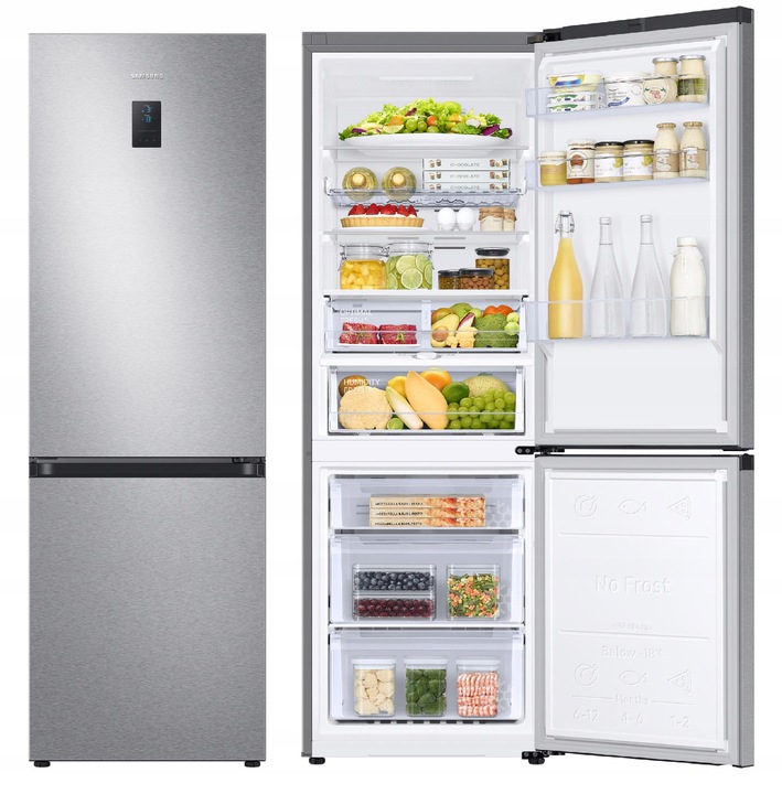 Технологія Full No Frost від Samsung забезпечує постійну циркуляцію прохолодного повітря, систематично видаляючи надлишок вологи з всередині холодильника. Завдяки цьому на стінках або продуктах не накопичується лід і іній. Їжа довше залишається свіжою та поживною, а підтримувати її в чистоті легше – без розморожування.