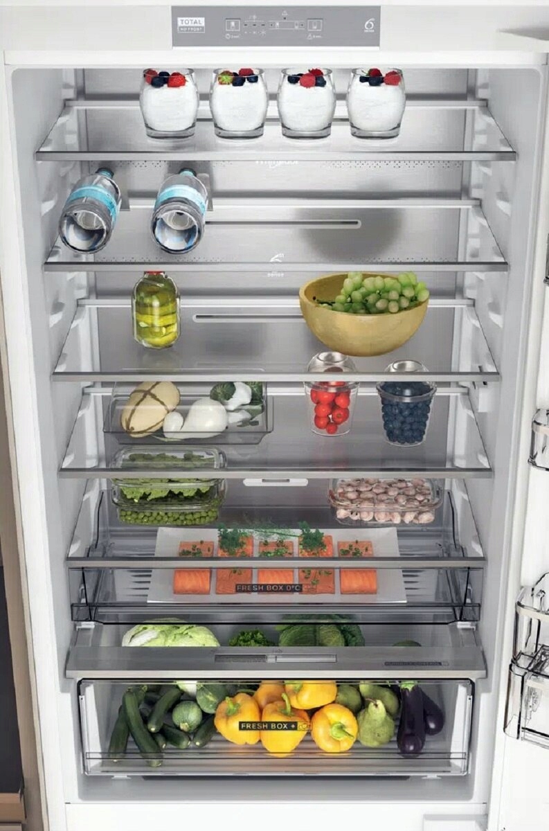 Всередині холодильника розташовані місткі ящики Fresh Box 0 і Fresh Box +, призначені для фруктів, овочів або свіжого м'яса і риби. Завдяки спеціальній вентиляції повітря вони зберігають смак, колір і поживні властивості. Тепер у вас під рукою свіжість!