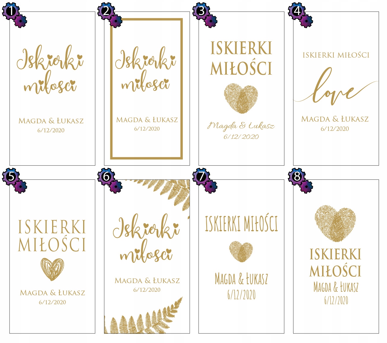- 10 золотих чохлів із розмірністю: 90 х 50 мм. Ручні накладки та рука -гільдані. Накладки надруковані на папері з вагою 250 гм/2