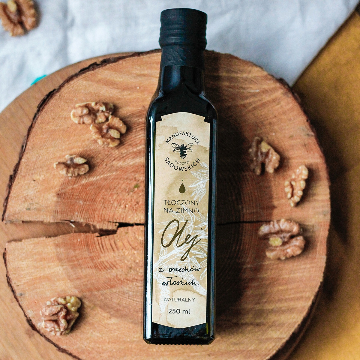 холодний прес, нерафіноване масло з волоського горіха . 100% природні, оскільки ми не вдосконалюємо нафту, ми не обробляємо і не вступаємо в будь -яку обробку. Ми стискаємо свіжі волоські горіхи в невеликому виготовленні, пляшках, і ви отримуєте свіжу горіхову олію, багаті поживними речовинами.