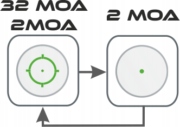 перемикається контур - під час тактичної зйомки ви можете використовувати 32 MOA форму та збільшити рівень успішності.