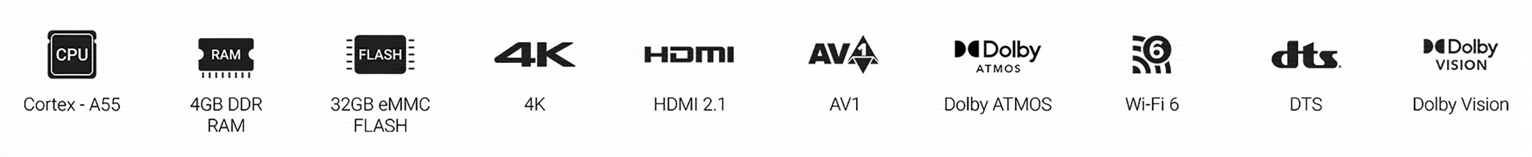 Homatics Box R Plus із підтримкою Dolby ATMOS і DTS занурить вас у кожну сцену та забезпечить більш насичене враження. За допомогою підтримуваного телевізора чи аудіосистеми ви отримаєте чудове зображення та чудовий звук.