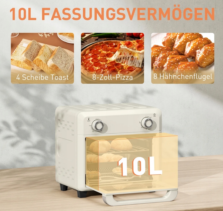Вивчіть універсальність міні -конвекційної духовки Homcom: зайняти мало місця для кухонного пристрою, який розмістить 20 см піци. Завдяки системі циркуляції гарячого повітря 360 ° ця електрична духовка готує на 85% менше олії, ідеально підходить для здорових страв. Завдяки регульованій температурі та таймеру, міні -піч ідеально підходить для всіх потреб, пов’язаних з приготуванням та спалюванням.