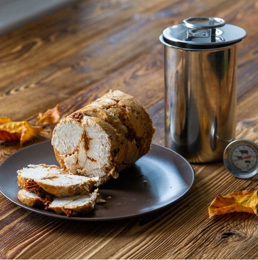 Ця спеціальна ємність використовується для приготування соковитого обіднього м’яса та різноманітних видів холодного м’яса та вегетаріанських страв – здорових і без хімічних добавок.