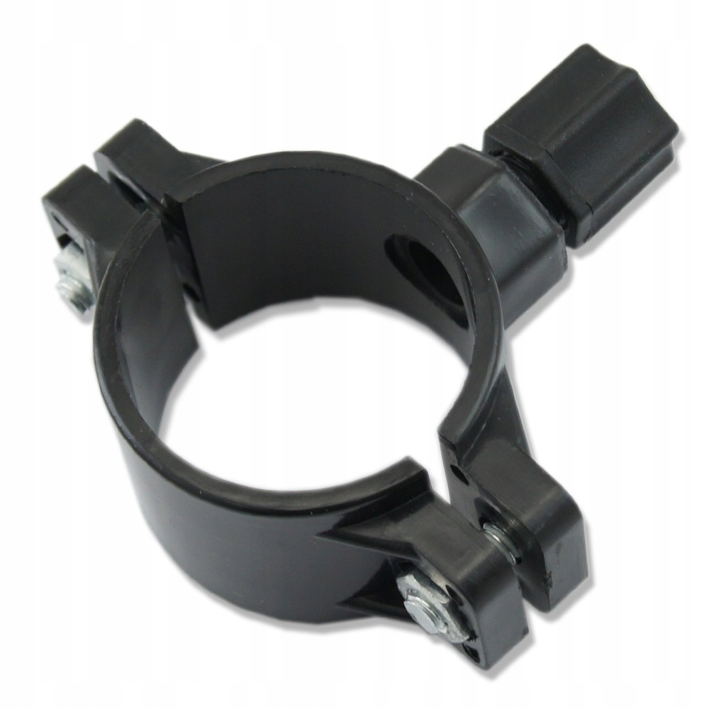Хомутик складається з двох половин, скріплених гвинтами, які міцно кріплять його до труби. Оснащена печаткою.