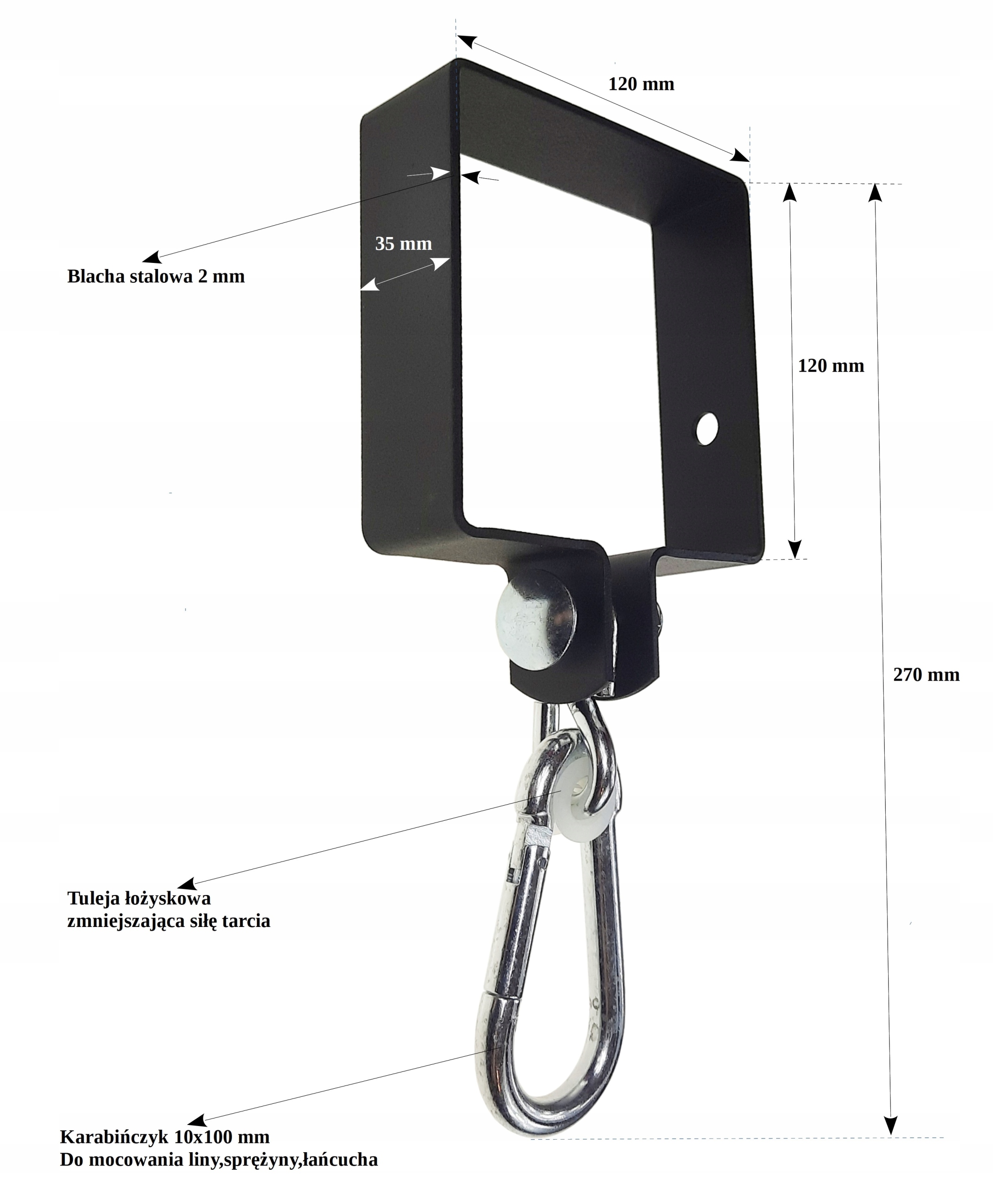 - Карабін із втулкою та гачком 10x100 мм для кріплення пружинної мотузки або ланцюга