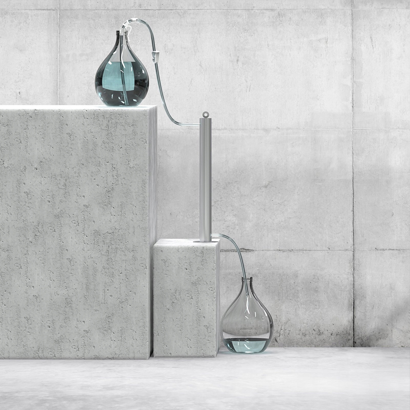 Пластикова ручка, що входить до комплекту, стабілізує шланг на краю посудини із зібраною рідиною та запобігає його вигину, а затиск дозволяє регулювати потік дистиляту.