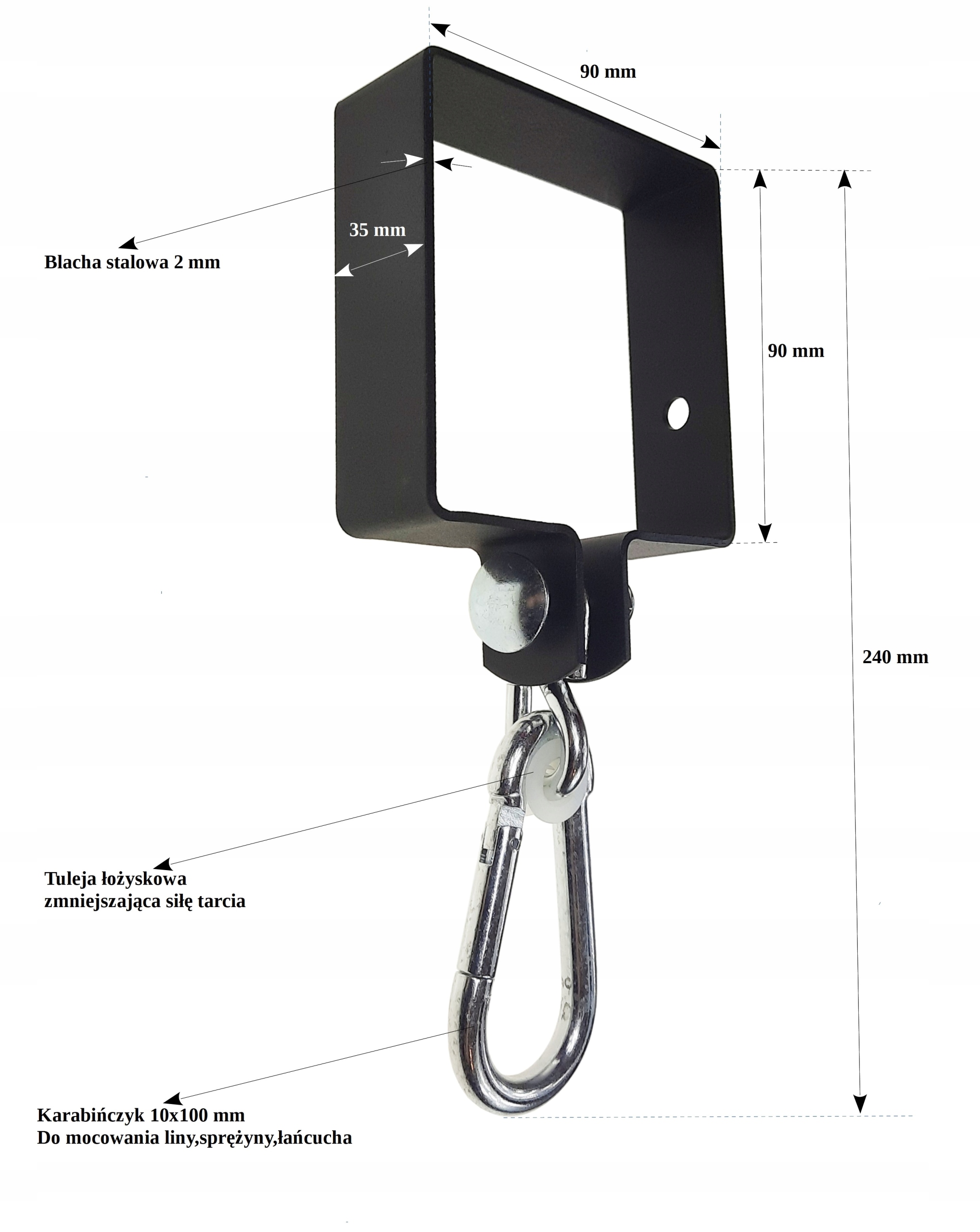 - Карабін з втулкою та гачком 10х100 мм для кріплення пружинної мотузки або ланцюжка