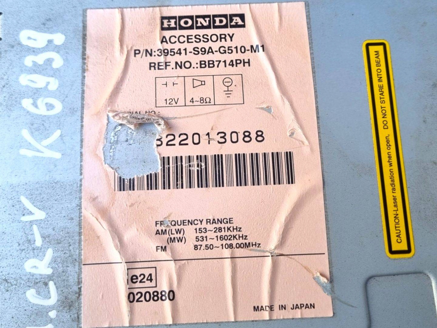 Honda CR-V 2 FACLIFT 2006 39541-S9A-G510-M1 Радіо