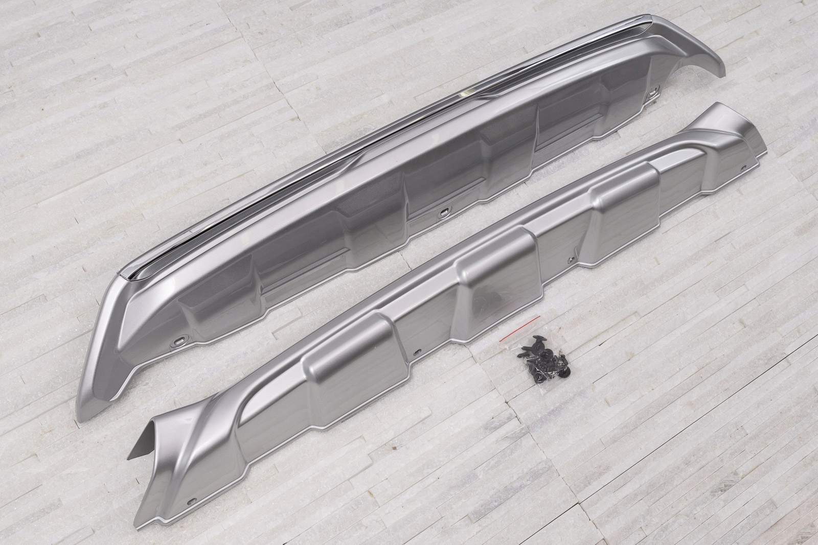 У комплект входять дві бічні панелі: для передньої та задньої частини автомобіля. Надставки виготовлені з високоякісного АБС-матеріалу, покритого лаком під алюміній, завдяки чому елементи набувають декоративного характеру. У комплект входять кріпильні елементи разом з подовжувачами. Ми рекомендуємо установку в професійній майстерні.