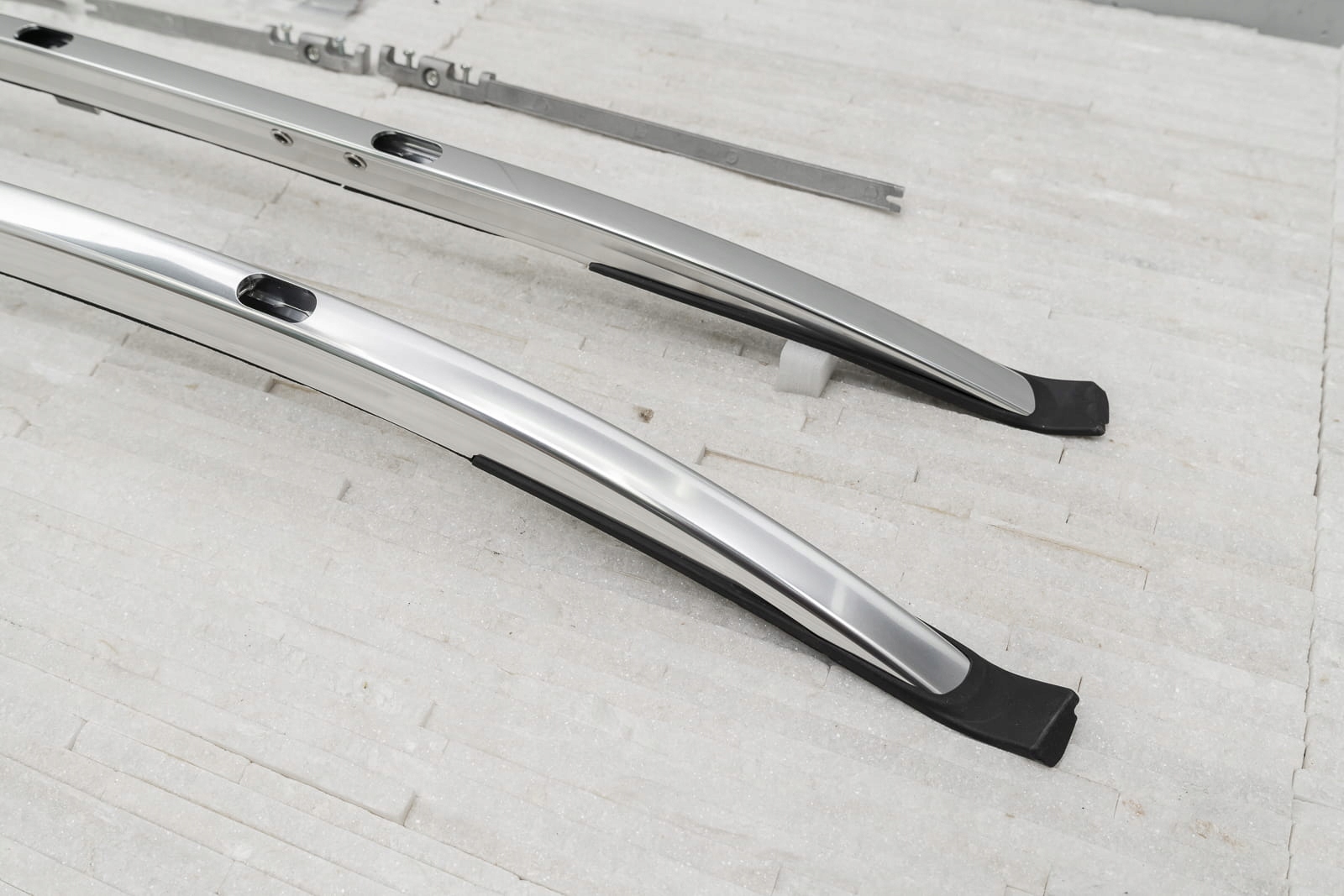 Рейлінги на даху використовуються для кріплення поперечин, ручки або ящики, що полегшує транспортування різних видів багажу на даху автомобіля. Добре підходить до ліній автомобіля. Вони створюють аеродинамічну форму з елегантним кріпленням до планки даху. Обтічна лінія не створює опору повітря під час руху, а отже, не збільшує шуму в салоні автомобіля. Виріб виготовлено з високоякісного алюмінію та пластику.
