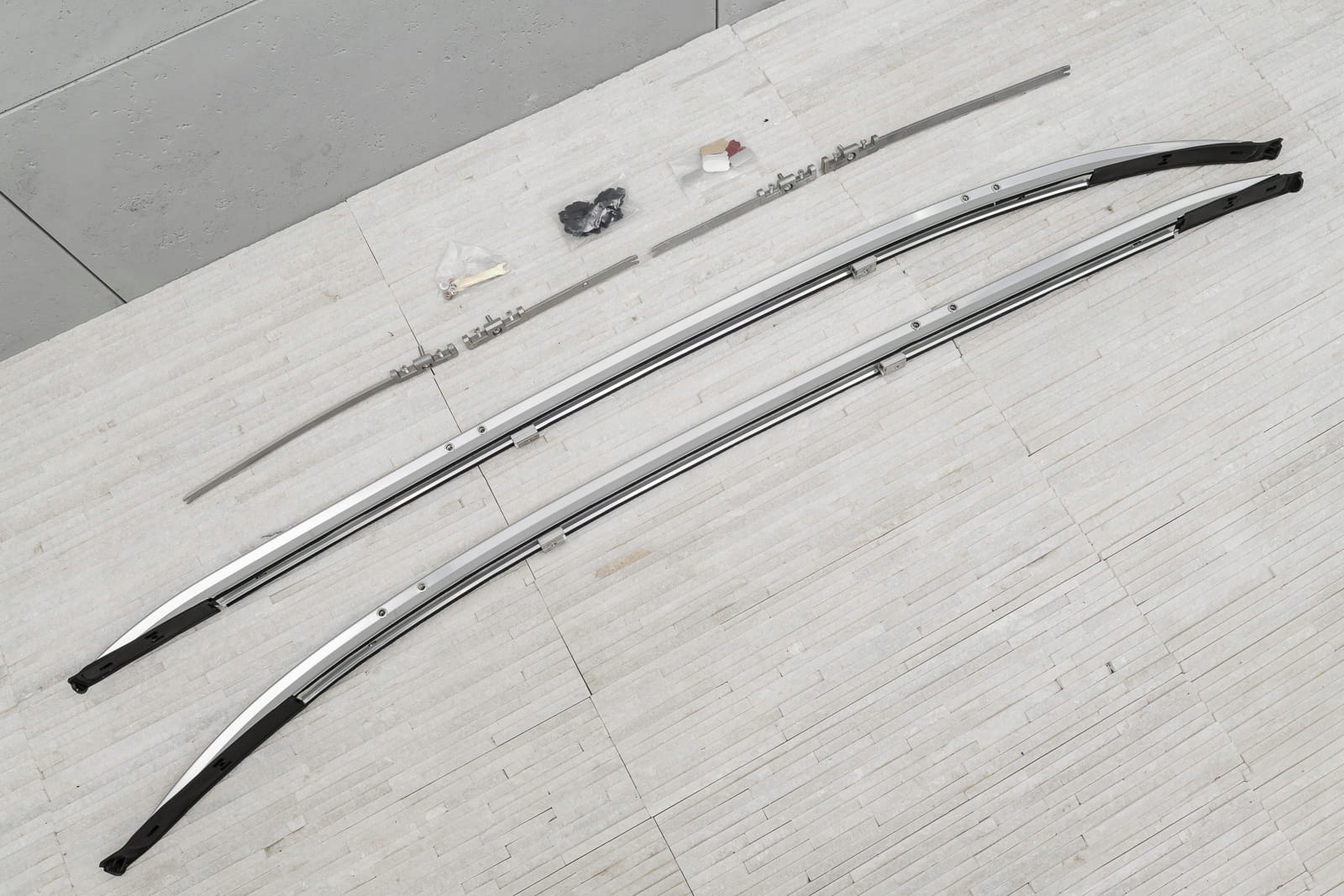 У комплект входить набір рейлінгів для лівої та правої сторін. Перила монтуються на заводі за допомогою кріпильних елементів, що входять у комплект. Ми рекомендуємо професійне встановлення. Абсолютно новий продукт, оригінально упакований.