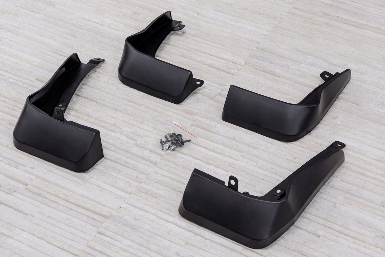 У комплект входить набір з чотирьох бризговиків і елементів кріплення. Виріб встановлено на заводські місця, без додаткових доробок. Ми рекомендуємо установку в професійній майстерні.