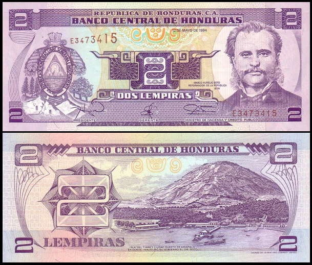 HONDURAS, 2 LEMPIRAS 1994 Pick 72c